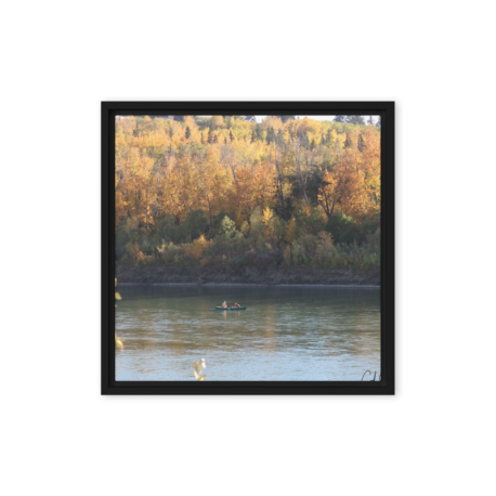 God Stands Nature Art - Man On The Water w/ his Dog in his Canoe Framed Canvas